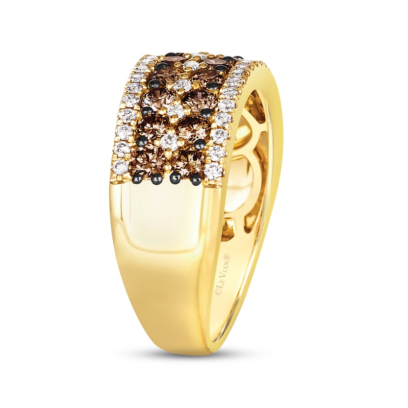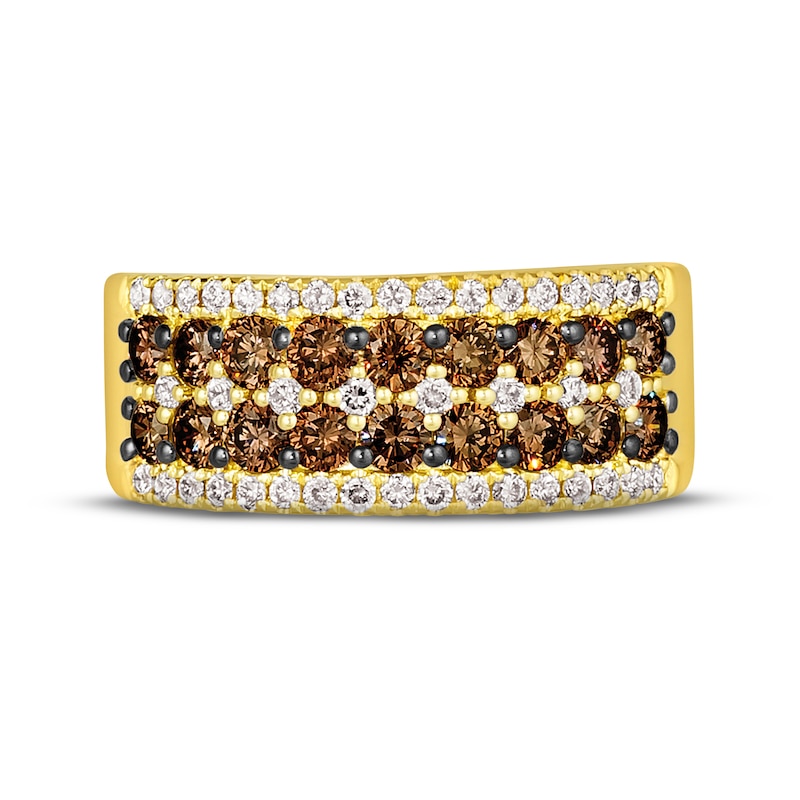 This alluring Le Vian® ring showcases rows of rich Chocolate Diamonds® and dazzling Nude Diamonds® for all-over sparkle. The wide band is crafted in warm 14K Honey Gold™ and has a total diamond weight of 1 1/3 carats. Le Vian®. Discover the Legend. This ring is available in limited sizes. If you don't see your size here, please visit a store to order your ring.