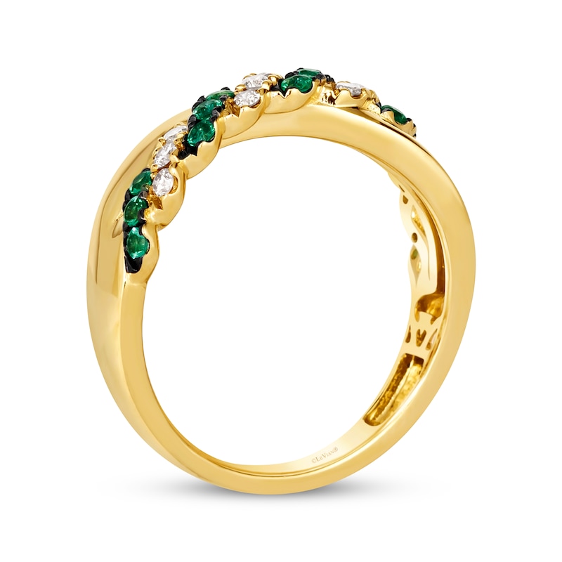- Le Vian Emerald & Diamond Crossover Twist Ring 1/5 ct tw Honey Gold Plated