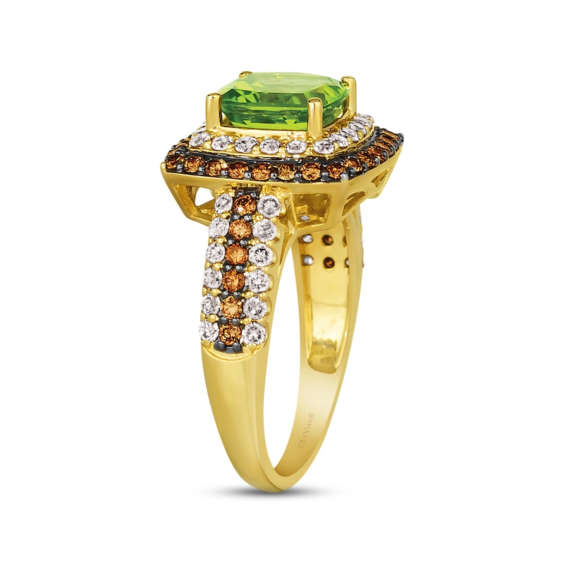 A sumptuous cushion-cut Green Apple Peridot™ gleams at the center of this enticing Le Vian® ring. Nude Diamonds™ and Chocolate Diamonds® form a dazzling frame and shimmer down the band for a total diamond weight of 1 carat. The ring is crafted in sweet 14K Honey Gold™. Le Vian®. Discover the Legend. This ring is available in limited sizes. If you don't see your size here, please visit a store to order your ring.