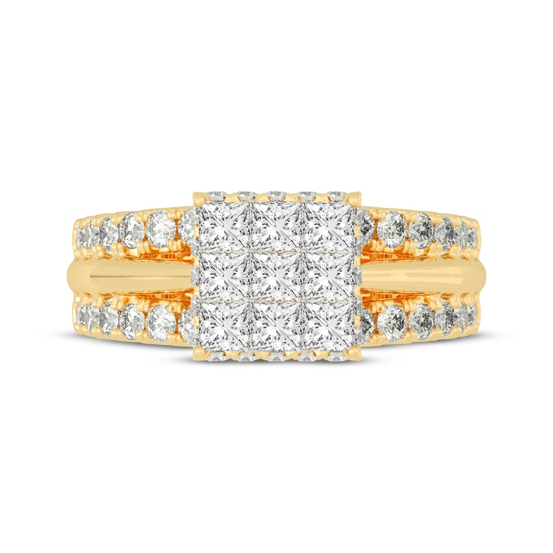 - Princess & Round-Cut Multi-Diamond Center Engagement Ring 2 ct tw Yellow Gold Plated