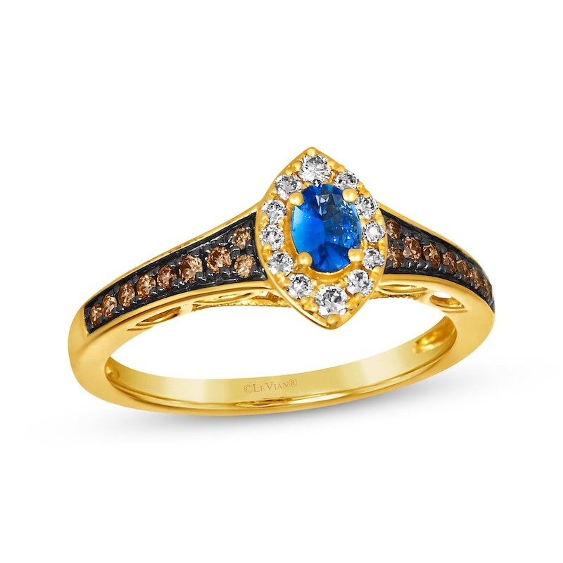 Le Vian Oval-Cut Blue Sapphire Ring 1/3 ct tw Diamonds Honey Gold Plated