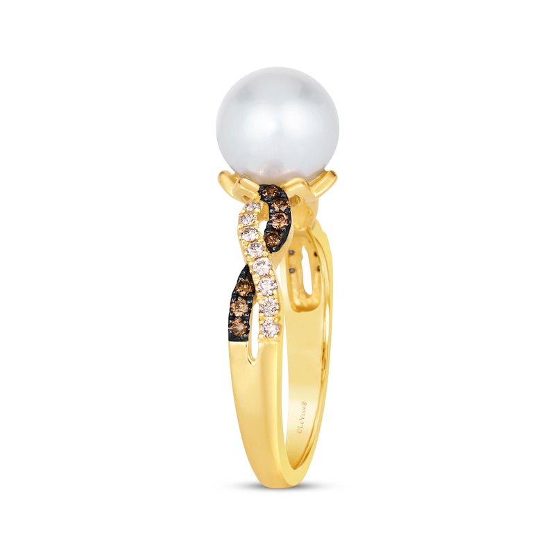 Le Vian Cultured Pearl Ring 1/5 ct tw Diamonds Honey Gold Plated