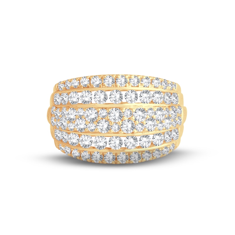 Several sparkling rows of round diamonds in different sizes adorn this bold and beautiful anniversary ring for her. Styled in timeless 14K yellow gold, the ring has an impressive total diamond weight of 2 carats. From the Now and Forever® bridal collection.