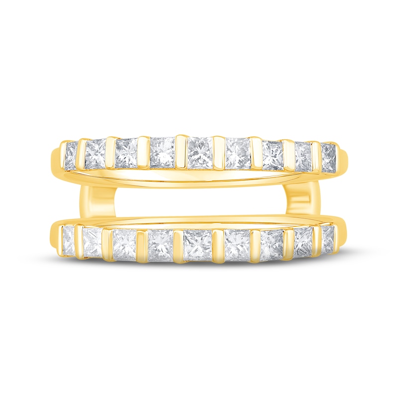 This brilliant enhancer ring is designed to sparkle above and below her engagement ring (sold separately). Two rows of glamorous princess-cut diamonds are styled in 14K yellow gold for a timeless look. The ring has a total diamond weight of 1 carat. From the Now & Forever® bridal collection.