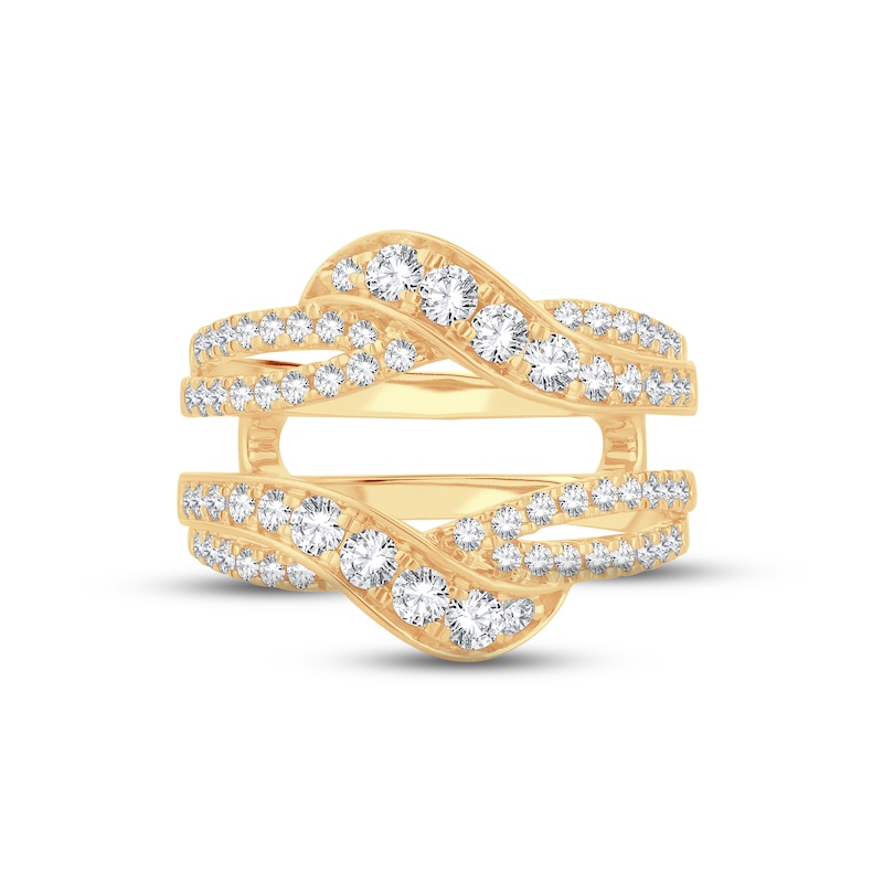 Shimmering round diamonds sweep along interweaving waves of 14K yellow gold in this captivating enhancer ring for her. Crafted to complement her diamond solitaire (sold separately), the ring has a total diamond weight of 1 carat. From the Now and Forever® bridal collection.