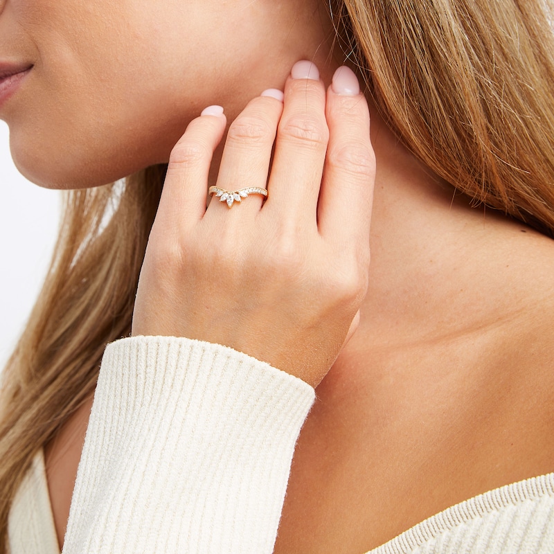 - Marquise & Round-Cut Diamond Contour Anniversary Band 1/3 ct tw Yellow Gold Plated