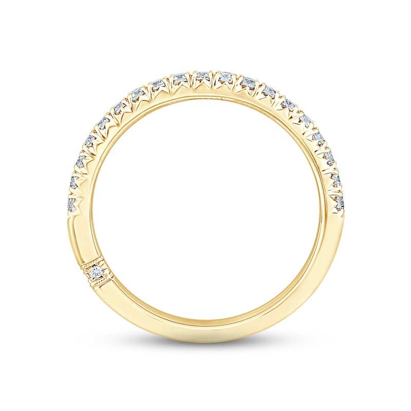 This brilliant anniversary ring displays a bright row of independently certified round-cut diamonds styled in gleaming 18K yellow gold. The ring has a total diamond weight of 1/3 carat. From the Monique Lhuillier Bliss collection, available exclusively at KAY. Please note: This ring is available in limited sizes. If you don't see your size here, please visit a store to order your ring.