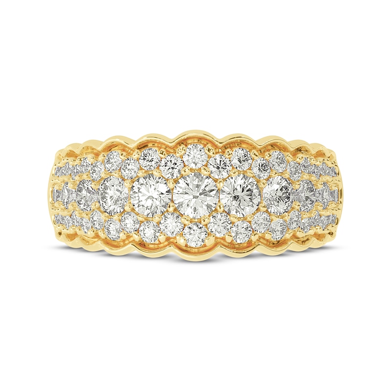 - Round-Cut Diamond Scallop-Edged Anniversary Band 1-1/2 ct tw Yellow Gold Plated