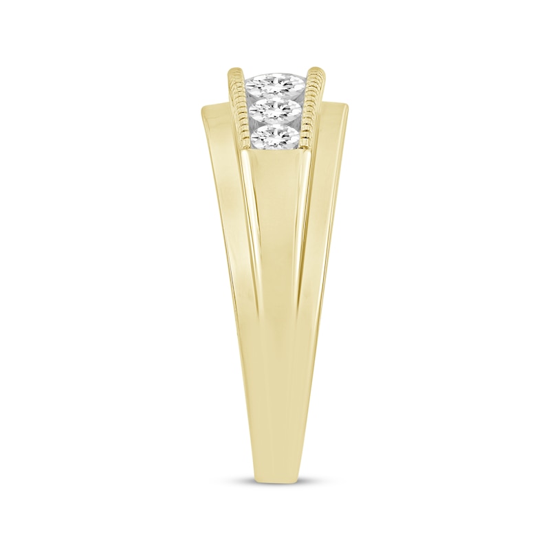 Men's Graduated Diamond Milgrain Wedding Band 1 ct tw Yellow Gold Plated