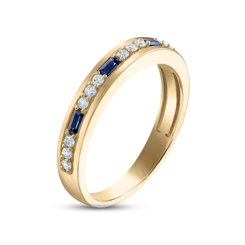 Men's Blue Sapphire & Diamond Wedding Band 1/5 ct tw Round-cut Yellow Gold Plated